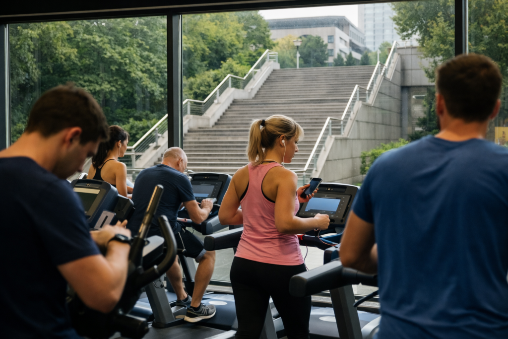 Les salles de fitness débordent le samedi matin. Mais à quelques mètres à peine, les escaliers restent désespérément vides. Nos villes n’ont jamais autant parlé du corps… et nos muscles n’ont jamais semblé aussi oubliés. Les parkings, eux, sont saturés. L’accès aux salles se fait par un escalator, sans échauffement préalable.