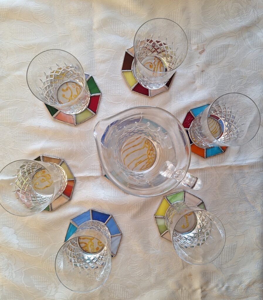 Dernièrement, j’offre des objets que je fabrique moi-même : dessous de verre façon vitrail, petits objets uniques. Le geste gagne en intimité et en sens.